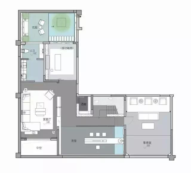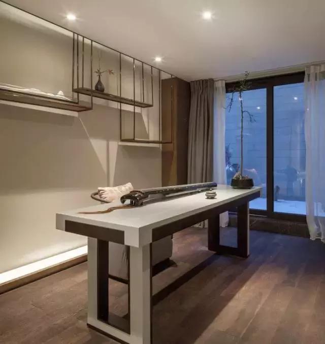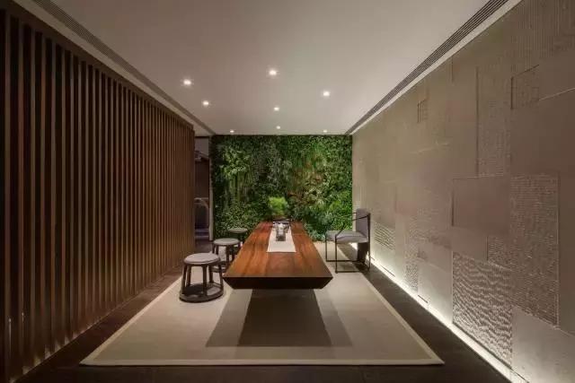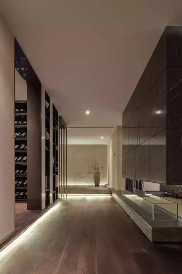 負(fù)一層的景觀花園,與琴房形成對(duì)話(huà)關(guān)系,讓原本陰暗的地下室更具生活氣息。茶室、影音室、酒窖、琴房的設(shè)計(jì),滿(mǎn)足了居者對(duì)生活品質(zhì)的追求。溫潤(rùn)的木隔柵、洗練的文化石,虛實(shí)之間,表達(dá)出意境和情調(diào)。