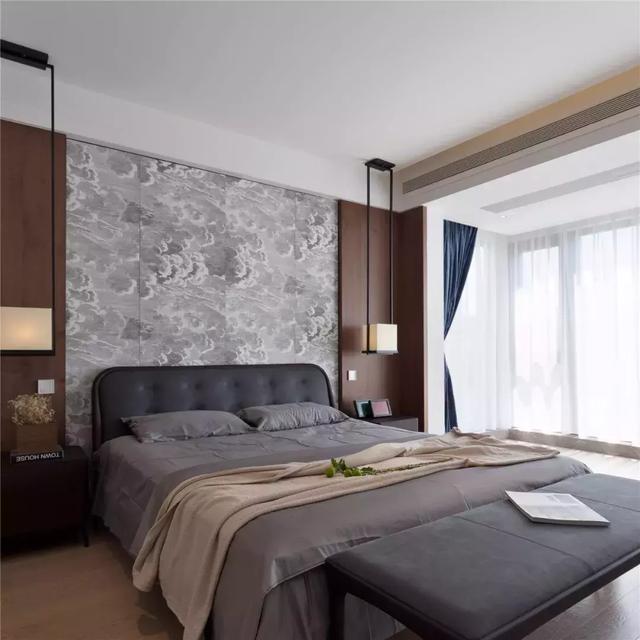 長(zhǎng)輩房整體設(shè)計(jì)低調(diào)而內(nèi)斂,空間擁有了歲月靜好的力量,藝術(shù)壁紙柔化空間的同時(shí),跳脫出嚴(yán)謹(jǐn)?shù)膸缀涡误w,蘊(yùn)藉出一份愜意的休閑氣氛。