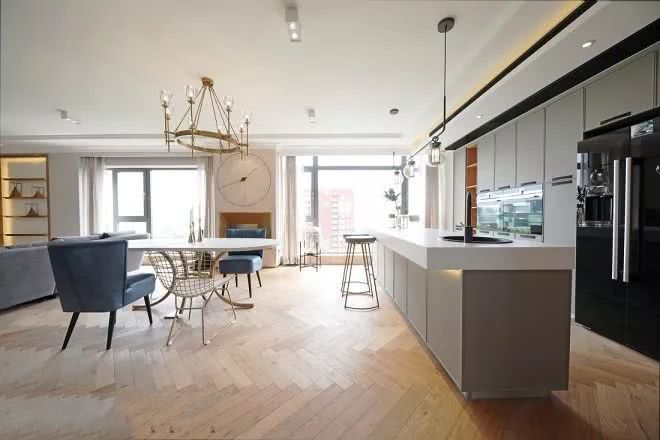 六、不會(huì)刻意突出硬裝隔斷,廚房簡(jiǎn)約一體化,采用灰白或者木色,也是北歐風(fēng)格常使用的設(shè)計(jì)方式。