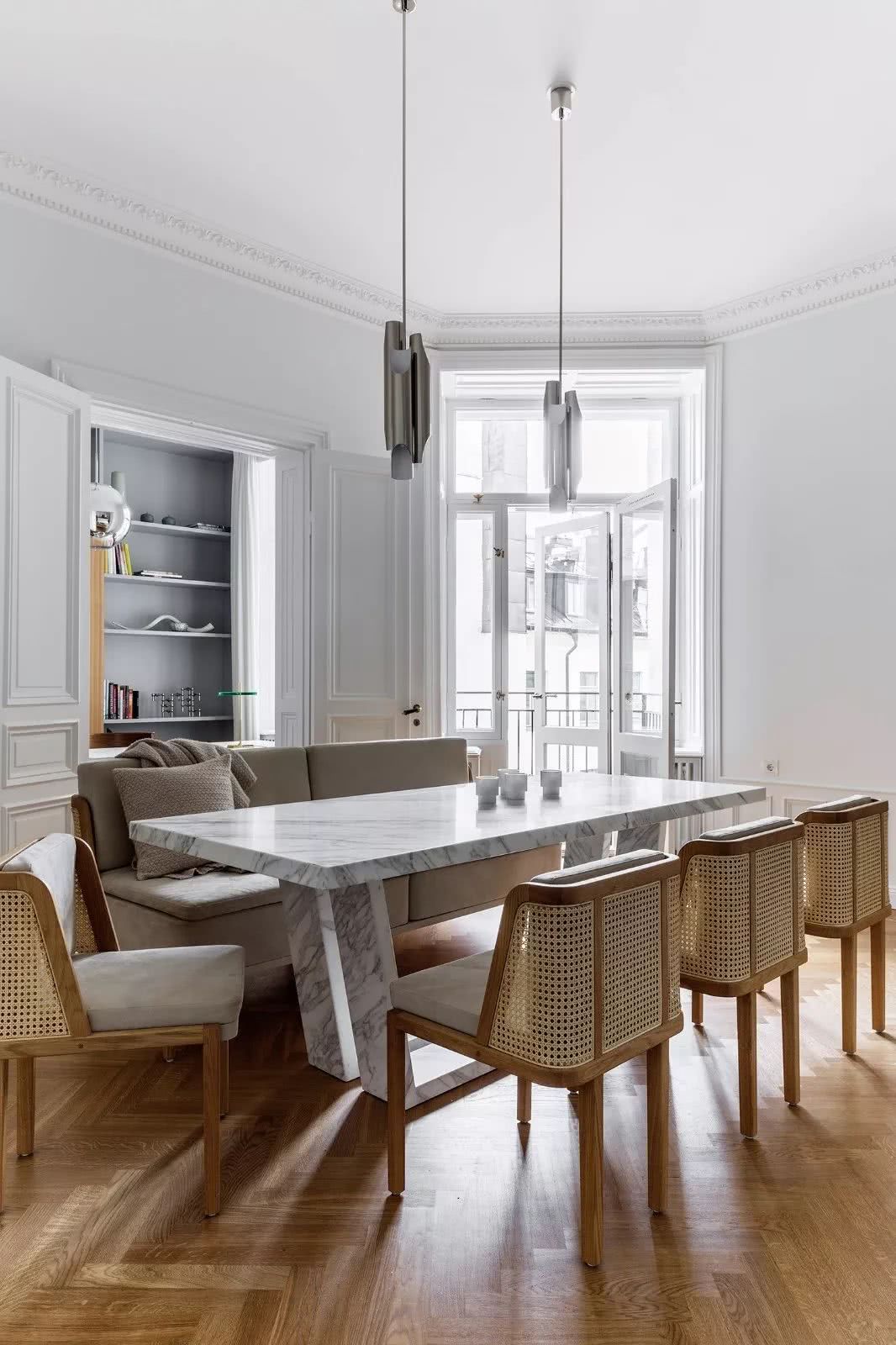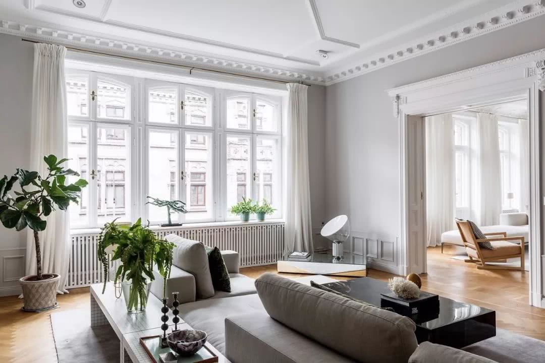 二、木材是北歐風(fēng)格的靈魂。為了室內(nèi)保溫,所以大量使用隔熱性能好的木材。它們大多保留木材的原始色彩和質(zhì)感,因?yàn)閲?guó)內(nèi)建筑大多為平頂,所以標(biāo)志性的尖頂和坡頂,演變成裝飾性的木質(zhì)假梁。