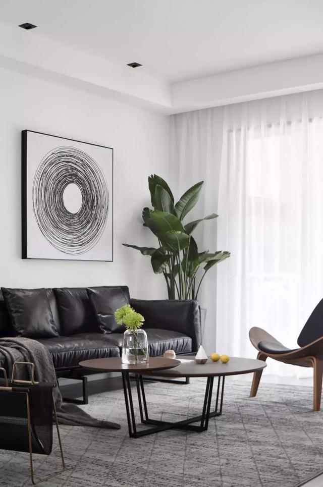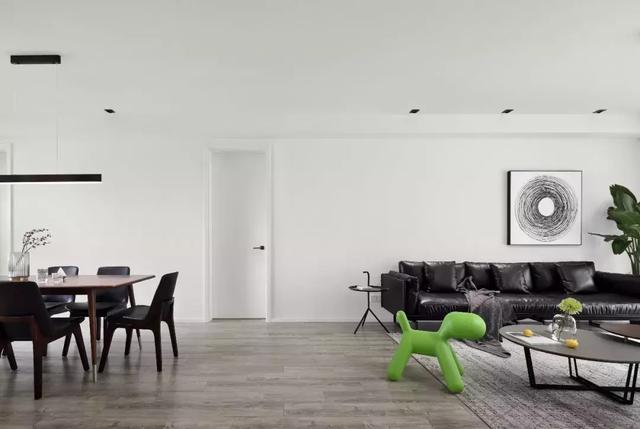 整個(gè)空間在硬裝上選擇了簡(jiǎn)潔的路線,黑色皮質(zhì)沙發(fā)與深色鐵藝所打造的率性空間與大白墻形成反差。濃郁但不跳躍的綠色裝飾點(diǎn)綴,為空間帶來生機(jī)而不影響整體的調(diào)性。