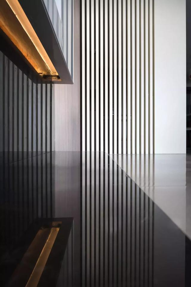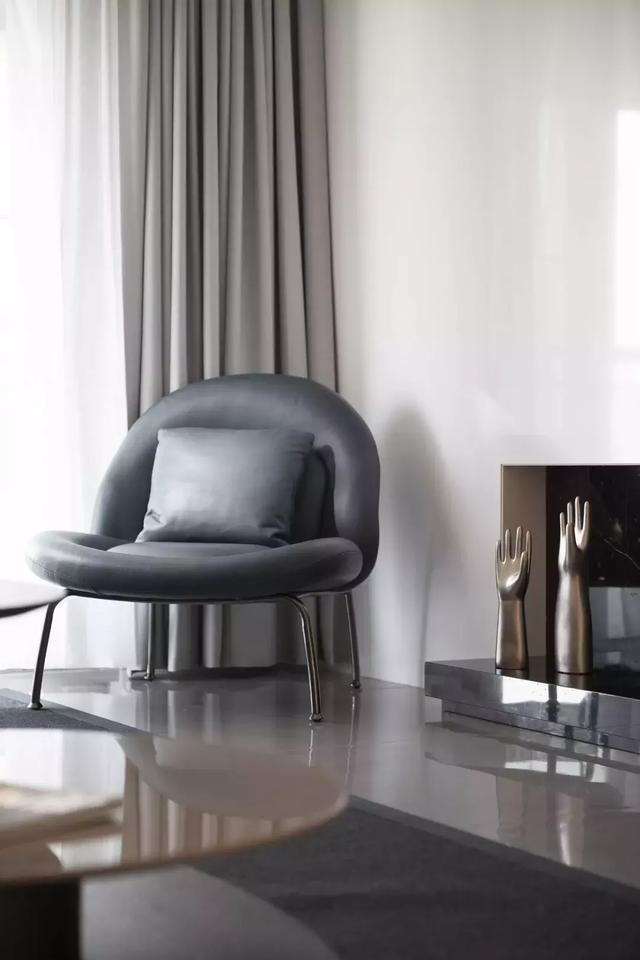 整體以最為低調(diào)的黑白灰三色為主,營(yíng)造質(zhì)感空間。設(shè)計(jì)重筆在“白”,含而不露,平衡著黑白界限分明的強(qiáng)烈對(duì)比。