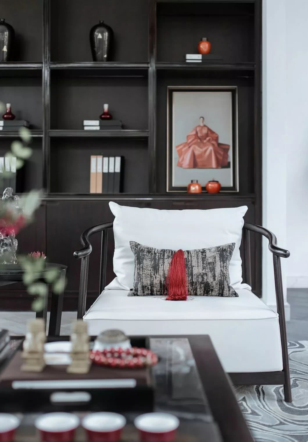 此詩句詮釋出此處的情景意境,可喻為“偷閑”,享受安靜愜意之地。故此氛圍之中,設雅座、置香爐,以意入景,處處透著舒適閑散的韻味。縷縷正紅獨特的點綴空間,其鮮艷欲動的神韻氣質(zhì)愈發(fā)使人迷醉,如初雪中綻放的紅梅,素雅中釋放著澎湃的生命氣息,席卷心靈。