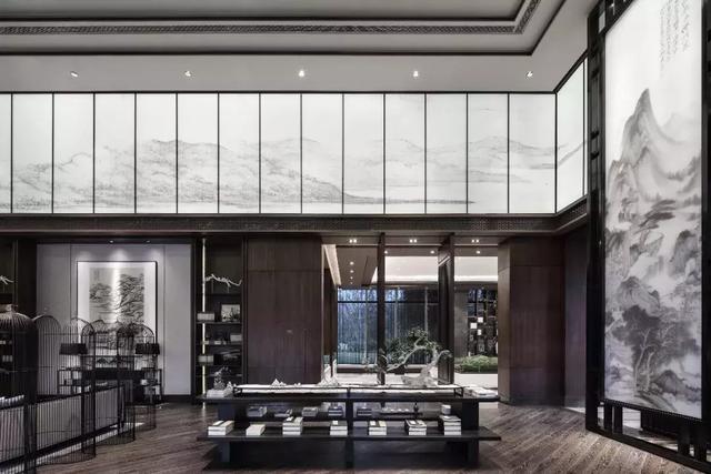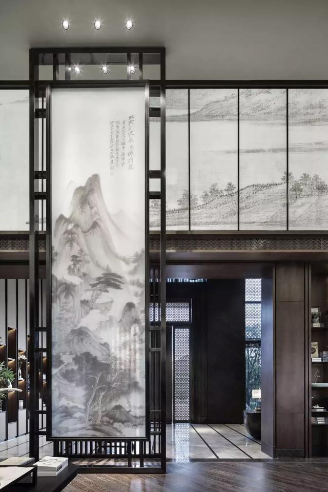 閒逸瀟灑不一定要到林泉野徑,小隱隱于野,中隱隱于市,于都市繁華之中山外山提供一絲靜謐的身心歸處。設(shè)計(jì)師將水墨畫融入洽談區(qū)天花似重若輕,中袖以《彷董源華陽(yáng)仙館圖》作屏風(fēng),使人豁然開(kāi)朗,如張大千般蓄美髯,衣美服,居美室,食美味,游天下,在世俗中自得其樂(lè)。