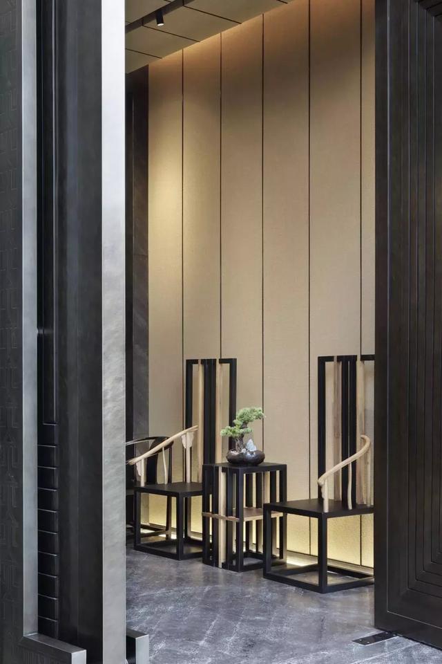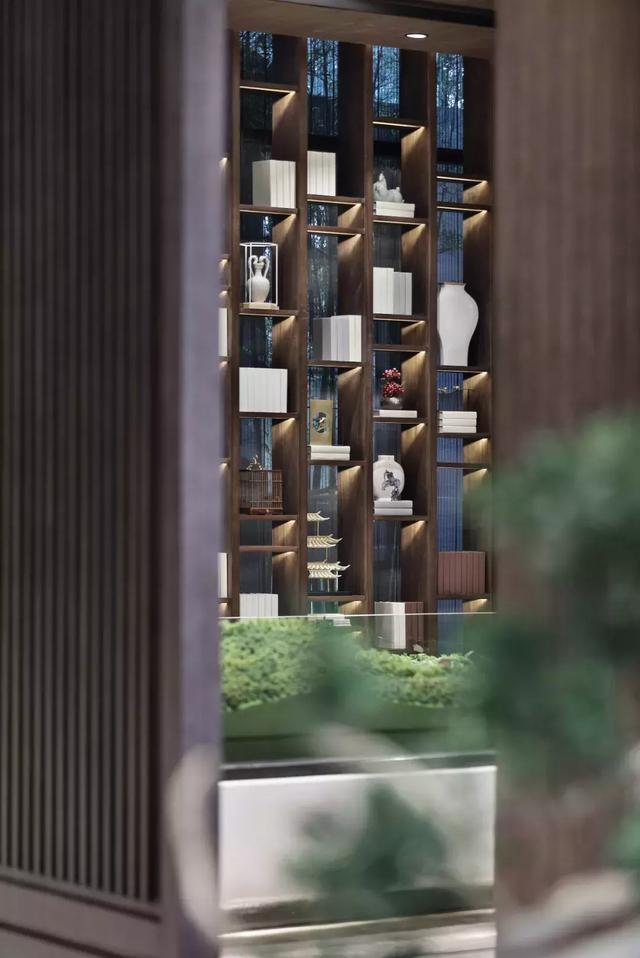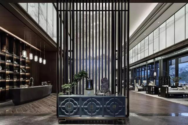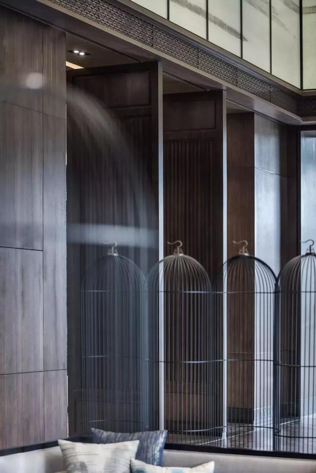鳥(niǎo)籠猶如文化的載體將其融入空間,韻涵民間的藝術(shù)、凋刻的工藝、以中式圖騰展現(xiàn)中式的雅致;鳥(niǎo)籠框架呈縱向紋路,光線透徹,形態(tài)各異,流暢的線條營(yíng)造空間感,鳥(niǎo)籠屏風(fēng)劃分空間而不侷促,俐落的棱角線條彰顯大器。