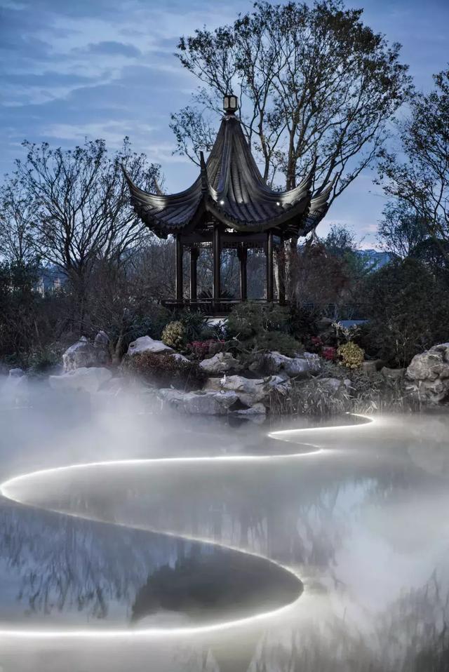 繁重的案牘,撓心的世故,費(fèi)心傷神,只求一份寧?kù)o致遠(yuǎn),尋找久違的令人嚮往的世外源──山外山。從建筑景致至室內(nèi)意念演繹出山倉(cāng)水秀,水活石潤(rùn),于天地之外的文人生活。