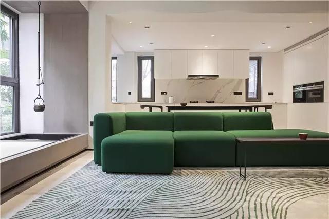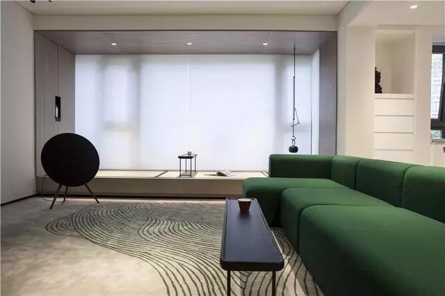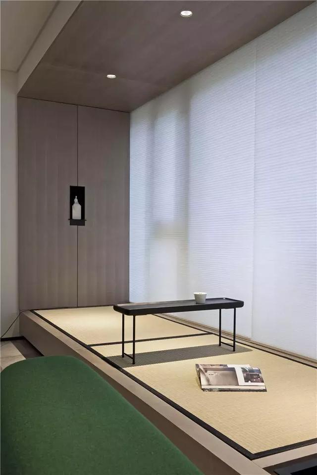 在客廳靠窗戶的地方安置了一處可席地而坐的休閑區(qū)域,斜陽西下的歸家時分,拾階而上,盤腿而坐,漸漸將塵世留在身后,直至滿眼青翠。