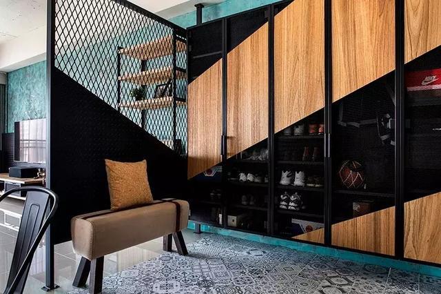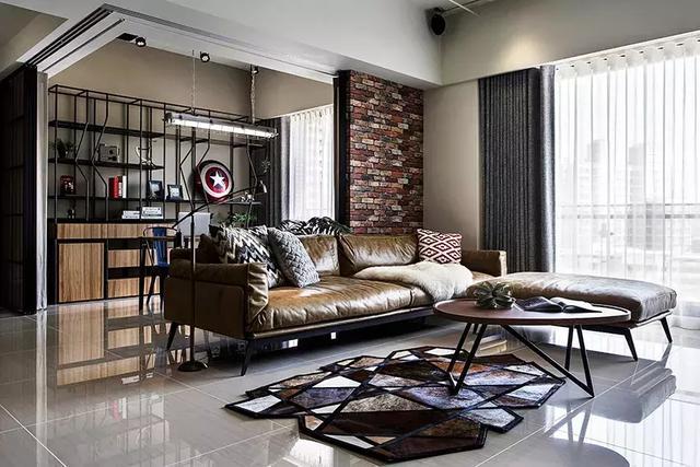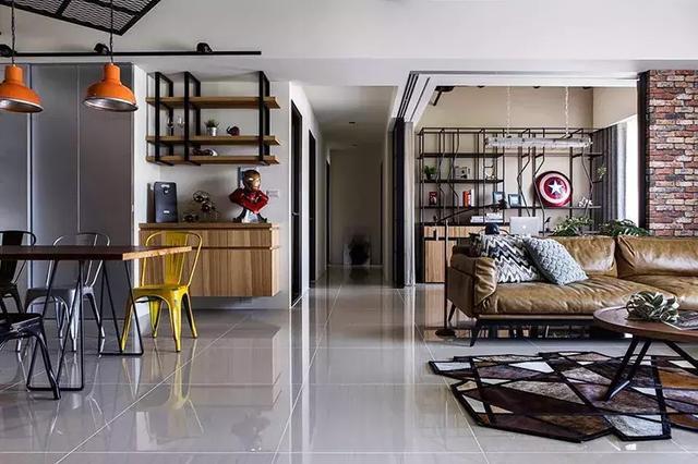 以鐵件搭配木質材料定制立面收納柜、工作桌、電視柜等,讓工業(yè)風格主軸鮮明。客廳沙發(fā)特別選用咖啡皮革,仿舊色調展現濃厚復古風味。