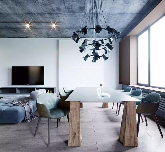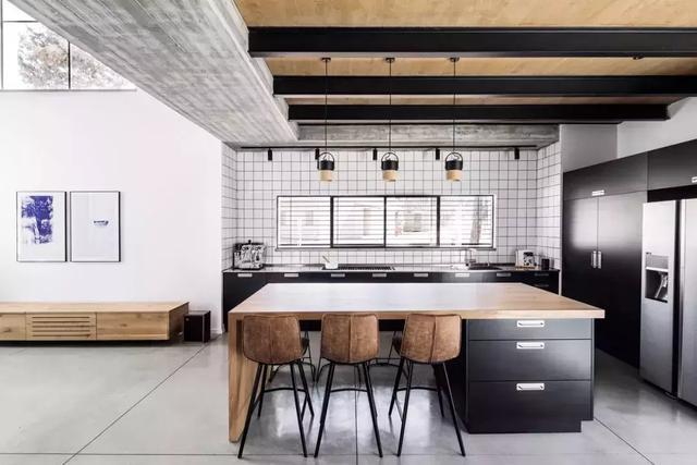 這套設計中設計師將混凝土,木材和金屬等原材料與暴露的橫梁和拋光混凝土地板結合在一起。