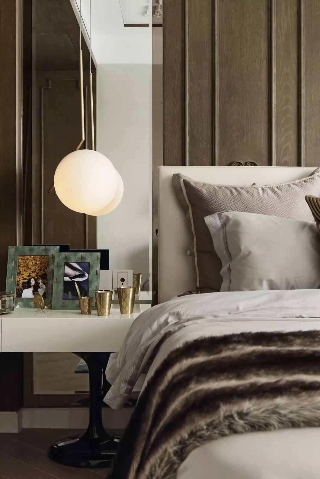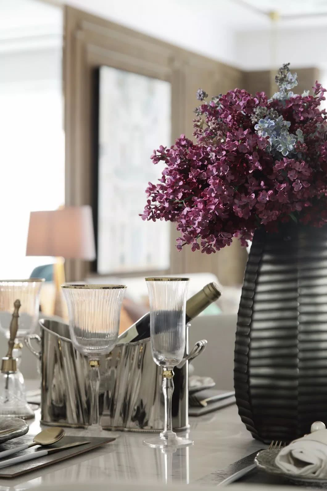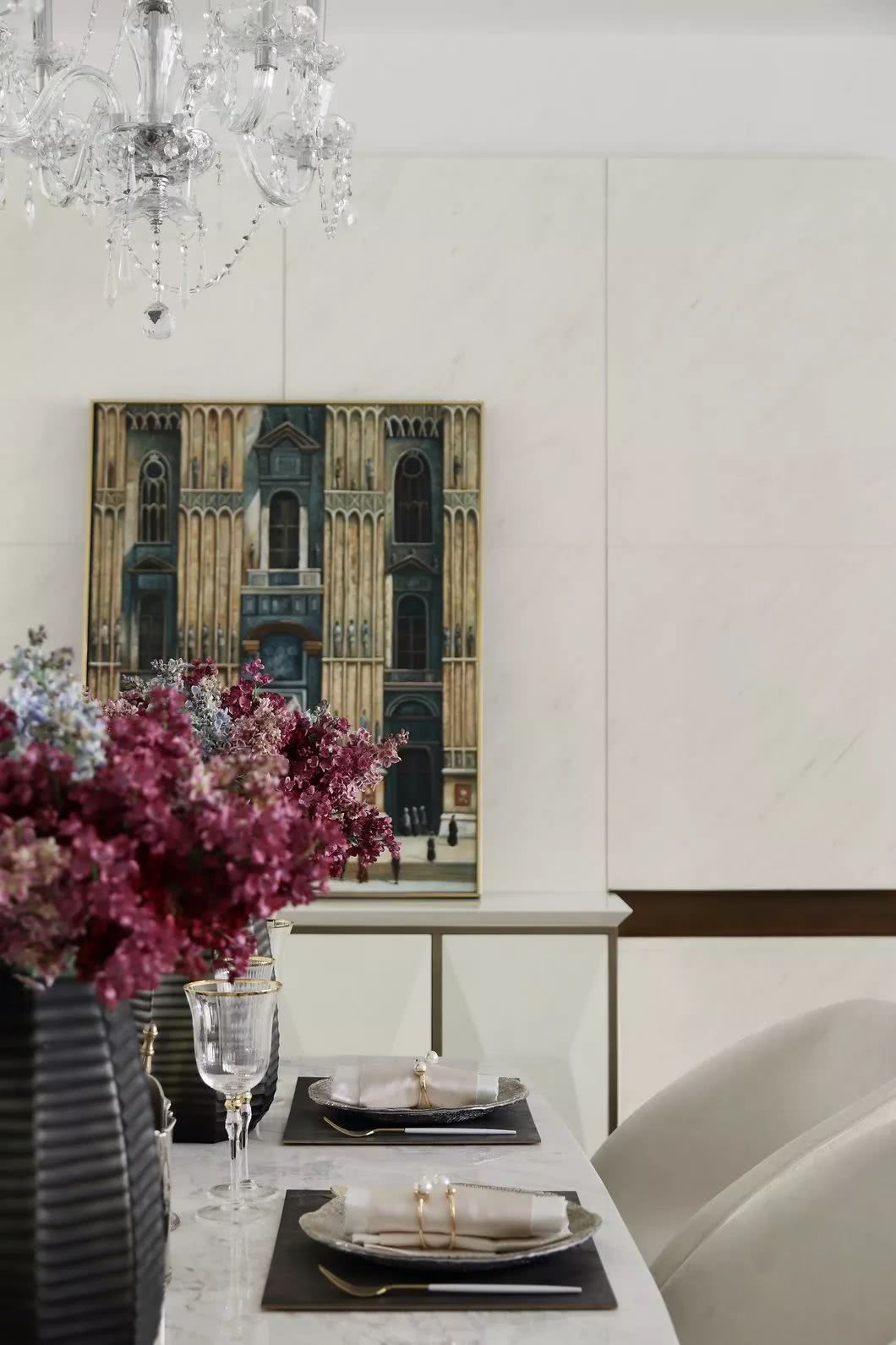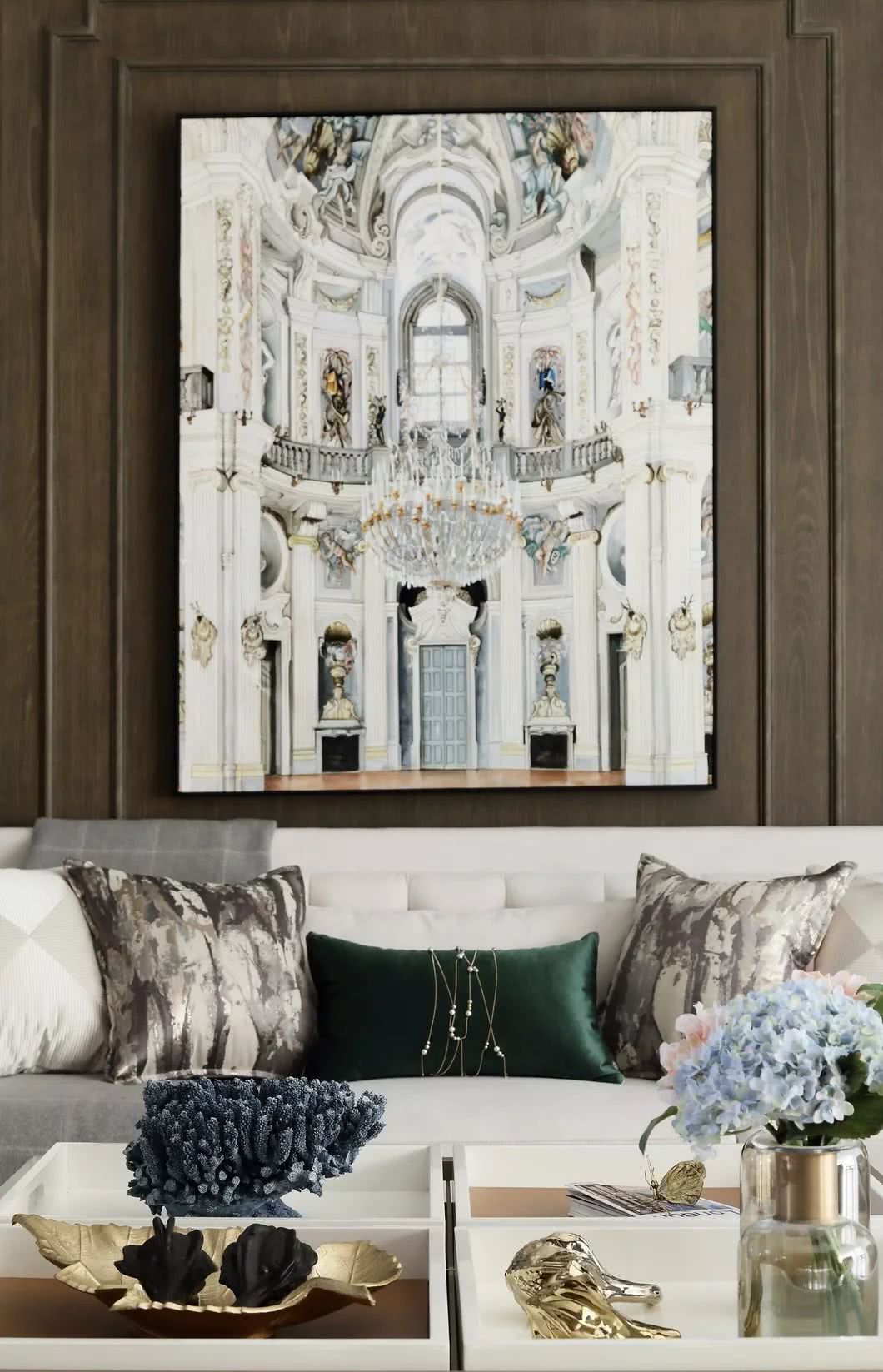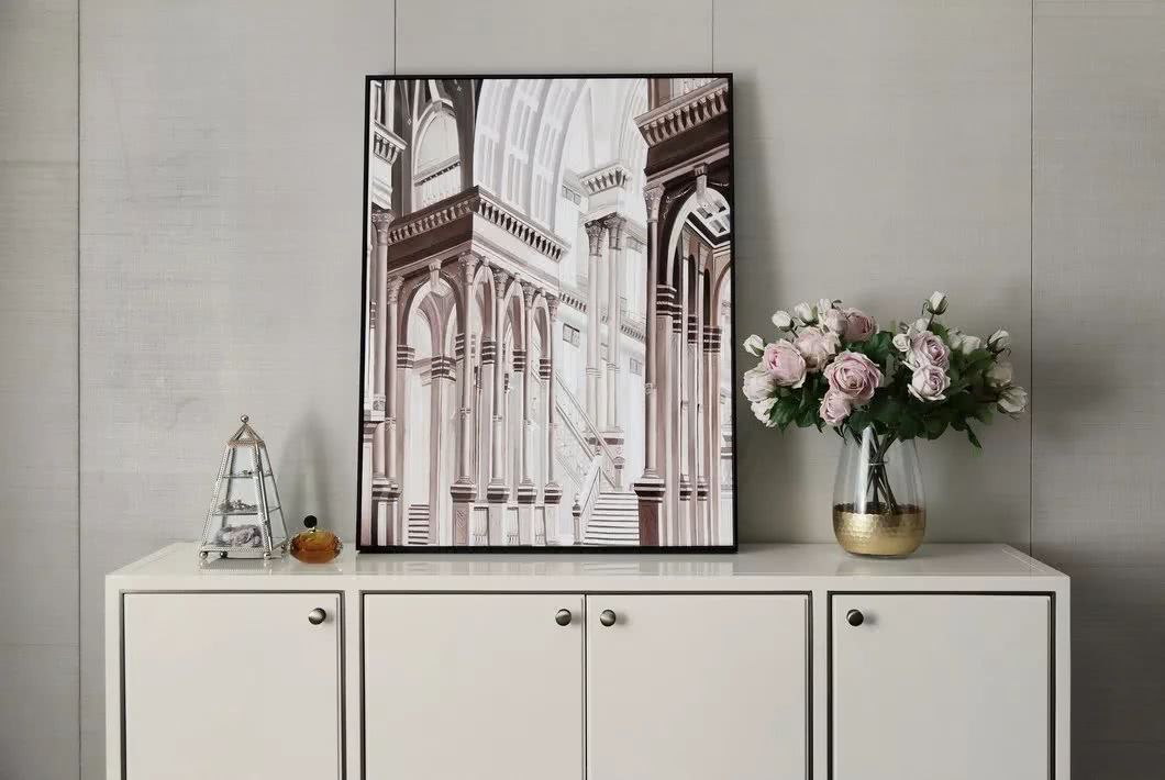 古銅色絲線和厚重典雅的大理石,纏繞羈絆于墻身犄角,不經(jīng)意間泄露出家中主人的不凡品味。似是一支時有小提琴隱沒其間的協(xié)奏曲,悠揚(yáng)在你的手邊肘間。
