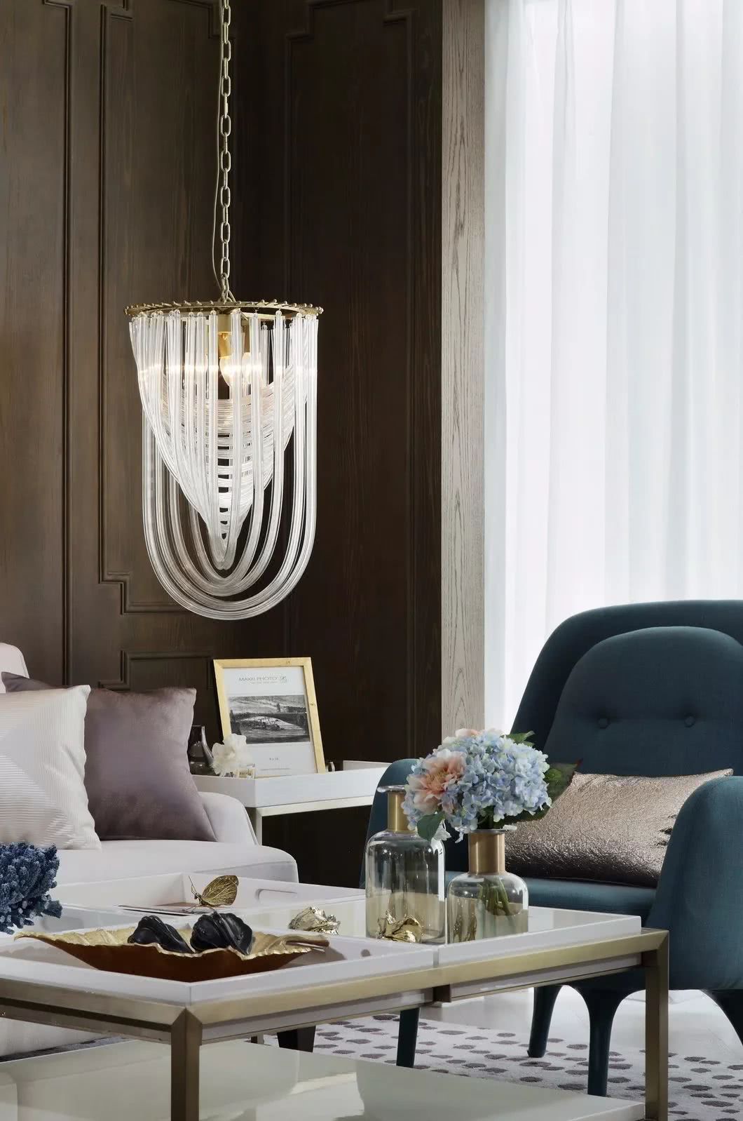 有這樣一個空間,留給與家人相處的好時光,圍座在圓潤沙發(fā)上,從晨光到落霞,看著光線在家中流轉(zhuǎn),最后濃縮在一盞垂起的流蘇吊燈上,心里會有一種難以言語的踏實(shí)。