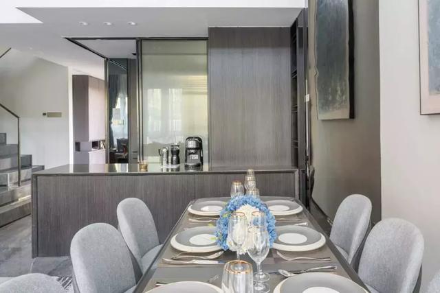 舞動(dòng)的火苗,溫暖了整個(gè)冬季。緊鄰餐廳區(qū)域轉(zhuǎn)身便是開放式廚房,打破原有封閉式的廚房,將廚房與餐廳、客廳連接起來,使居家空間更加通透寬敞、增加互動(dòng)性。在廚房的吧臺(tái)處,享受著甜蜜的下午茶或沉醉在雞尾酒的微醺下,配以舒適、溫暖的場(chǎng)景,給人一種對(duì)未來美好生活的向往。