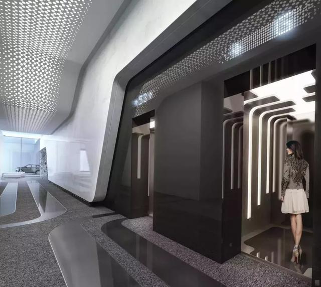公共空間是由扎哈·哈迪德設(shè)計的,其中包括了大樓的大堂和位于 61 層上面的雙層水上運動中心和一個空中酒廊。