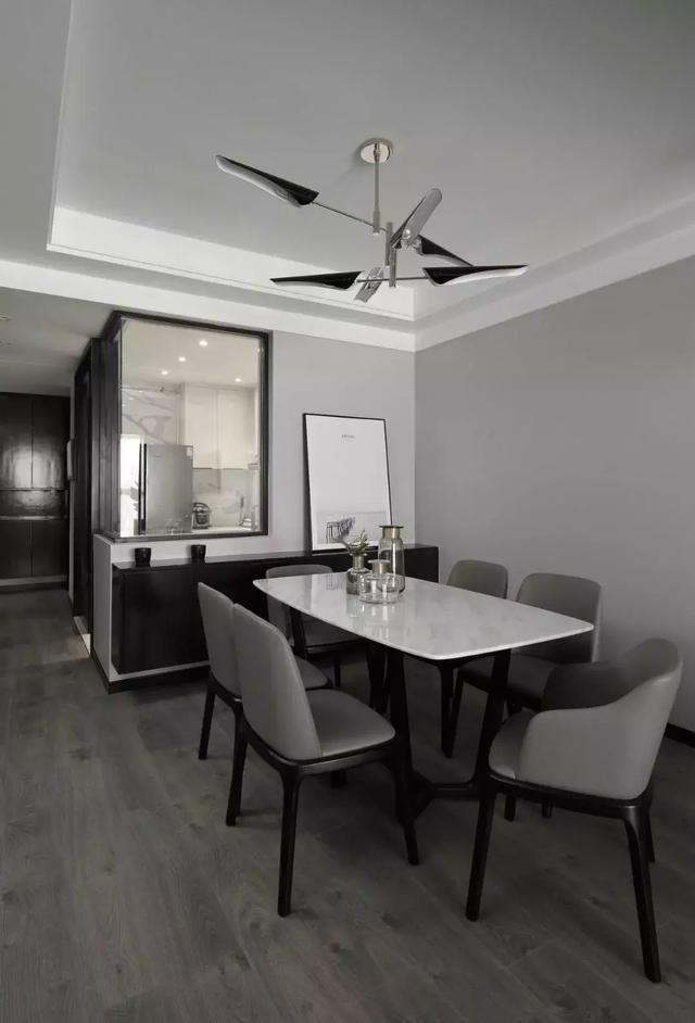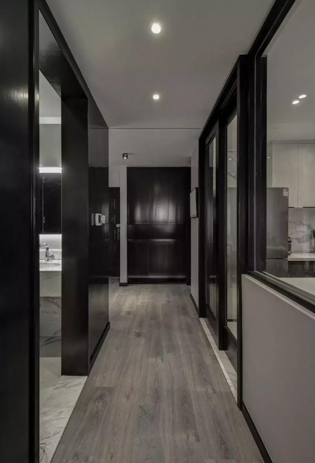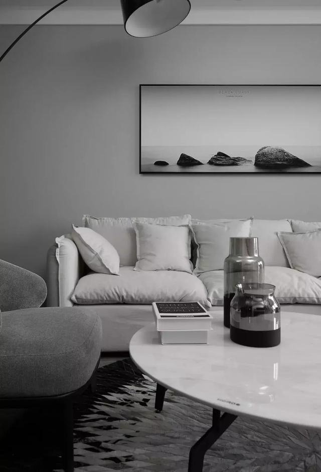 地毯層層疊疊的黑,籠罩著心中的純白,深胡桃木色與高級灰的映襯,清冷干凈。
