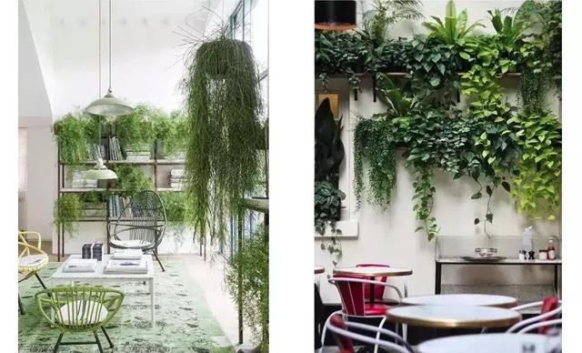 在墻面種植攀爬或垂吊的藤本植物。這種形式的綠植墻比較常見,一般會(huì)出現(xiàn)在房子外面的墻面上,綠意盎然,別具一格的韻味。將其形式用于屋內(nèi),也別有一番風(fēng)味哦!一般會(huì)選擇爬山虎、絡(luò)石、常春藤、扶芳藤、綠蘿等植物,這類綠化形式簡便易行、造價(jià)較低、透光透氣性好。