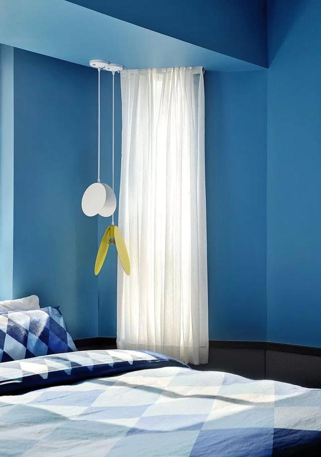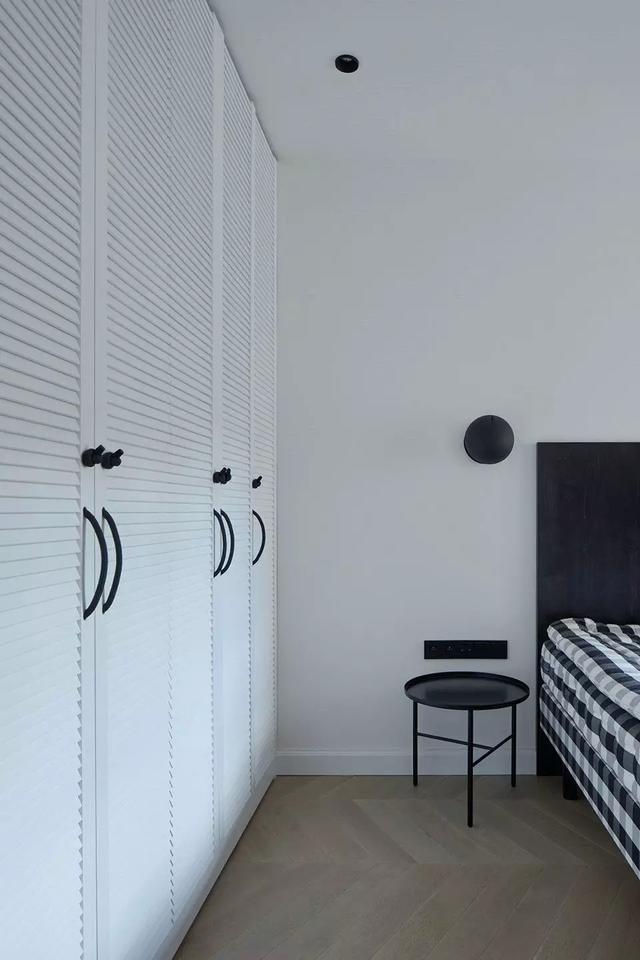 臥室的定制衣櫥擁有極為特別的櫥門印花。設(shè)計(jì)師出其不意的使用編繩作為櫥門把手,并將這一設(shè)計(jì)元素進(jìn)一步用于整間公寓的設(shè)計(jì)中。一扇玻璃窗讓臥室與浴室建立趣味的聯(lián)系。來(lái)自瑞典的海絲騰床墊和特殊定制的床頭板,以及小巧靈活的邊桌,為這一空間創(chuàng)建了獨(dú)有標(biāo)簽。