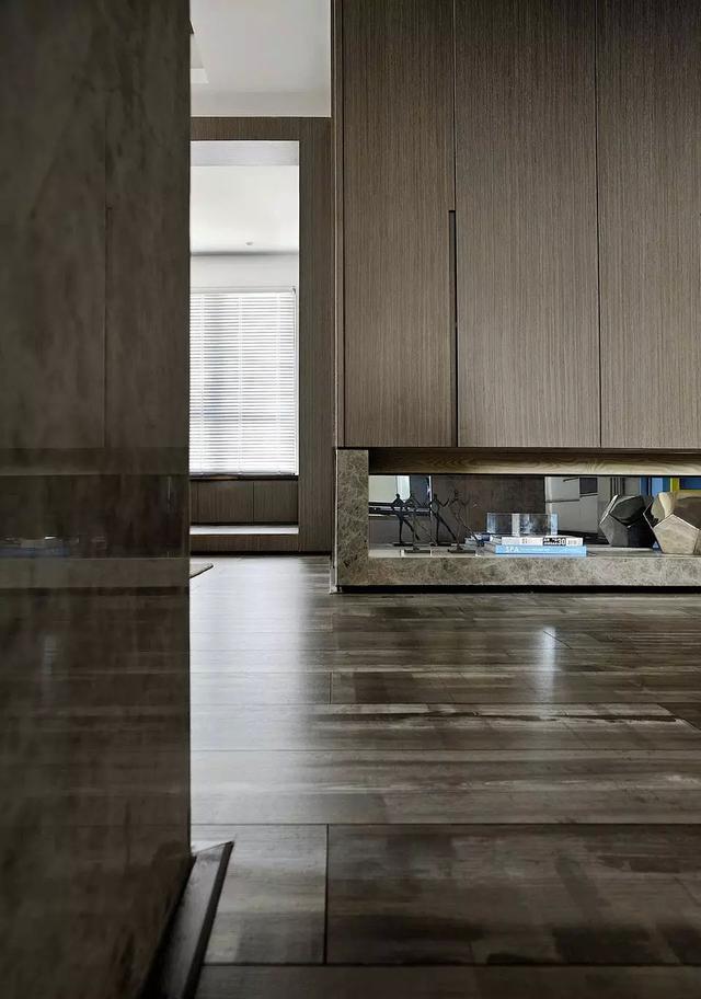 ▼門廳采用深色地板磚與居住環(huán)境區(qū)分開(kāi)來(lái)