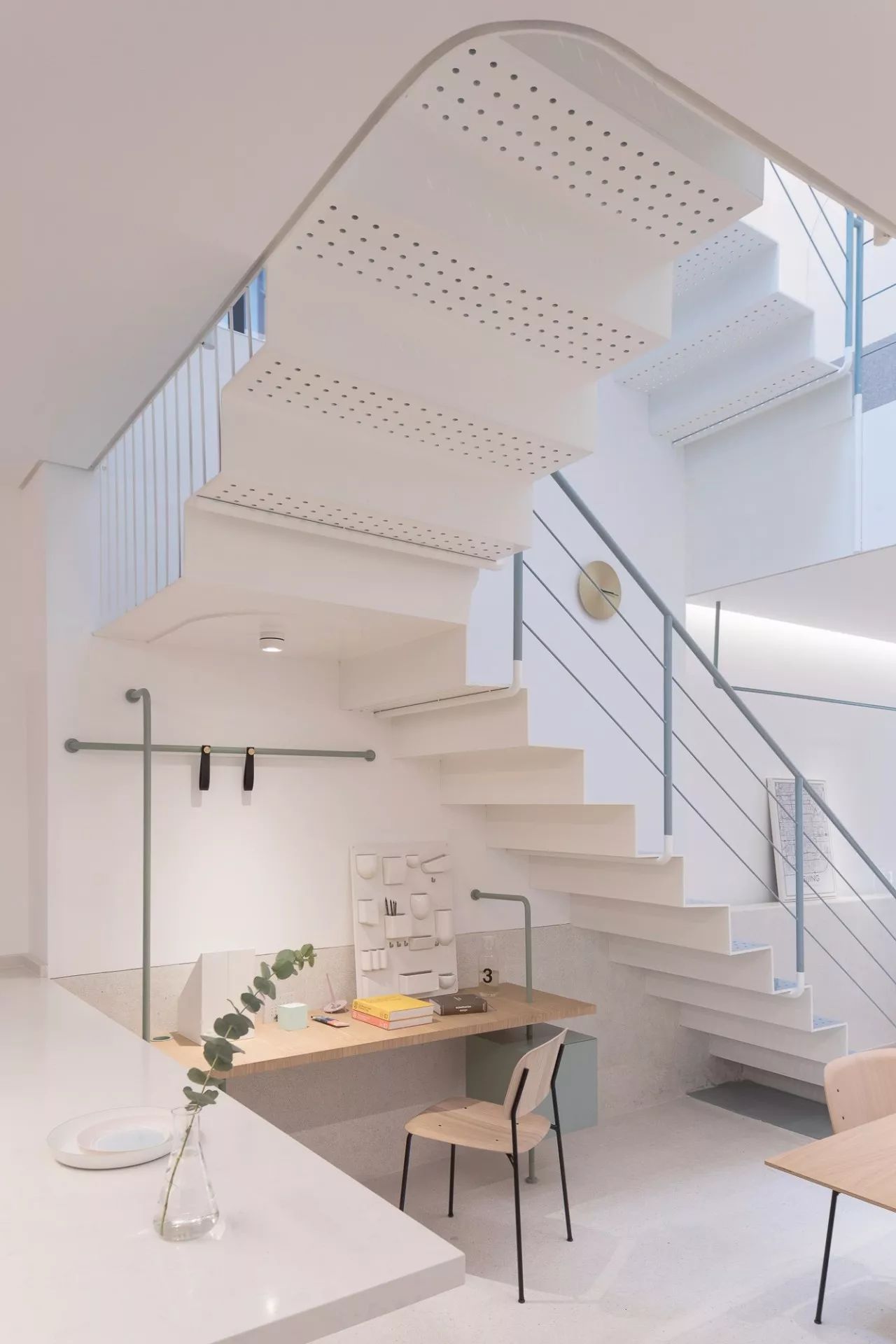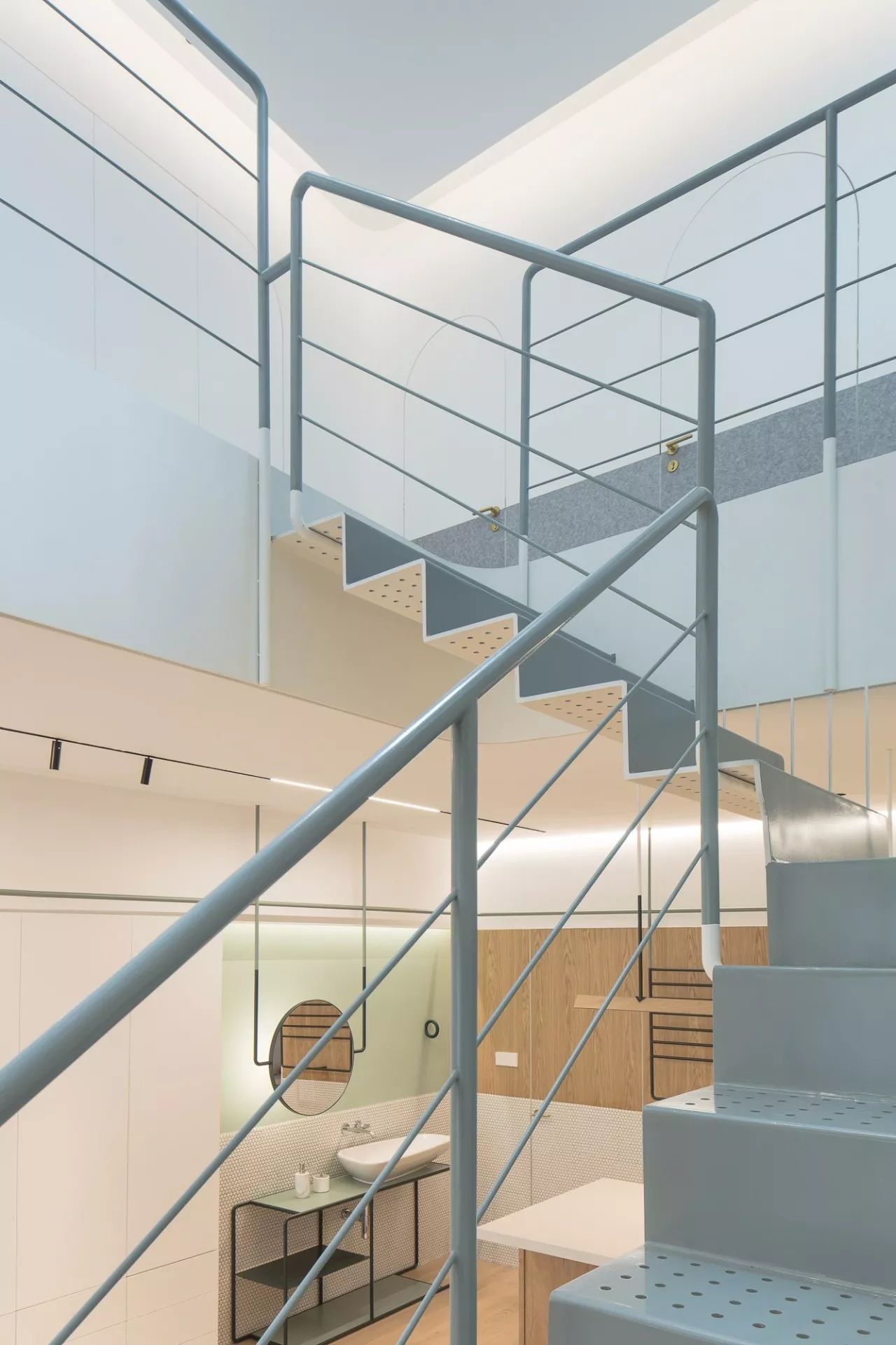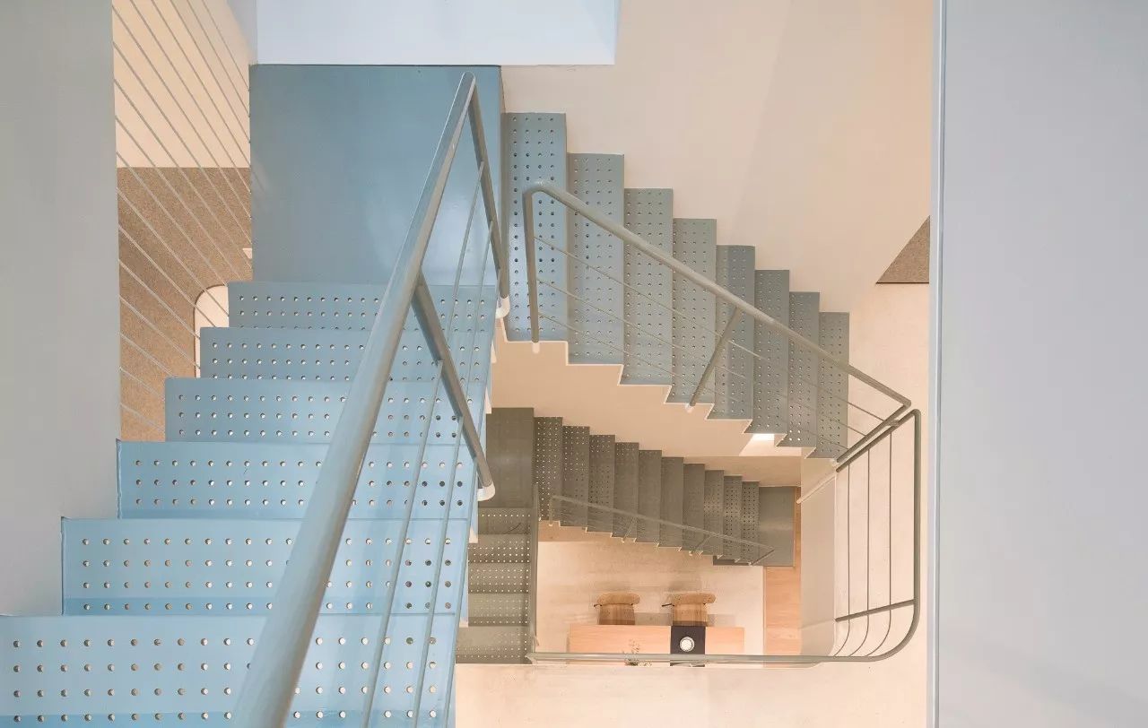 ▲沖孔鋼板樓梯與天窗最大程度的引入了自然光。