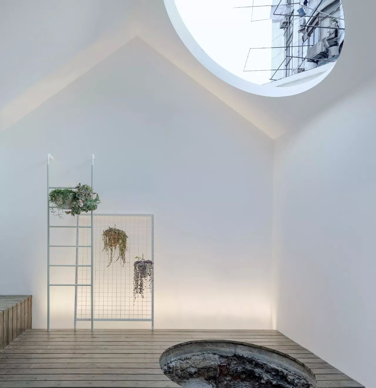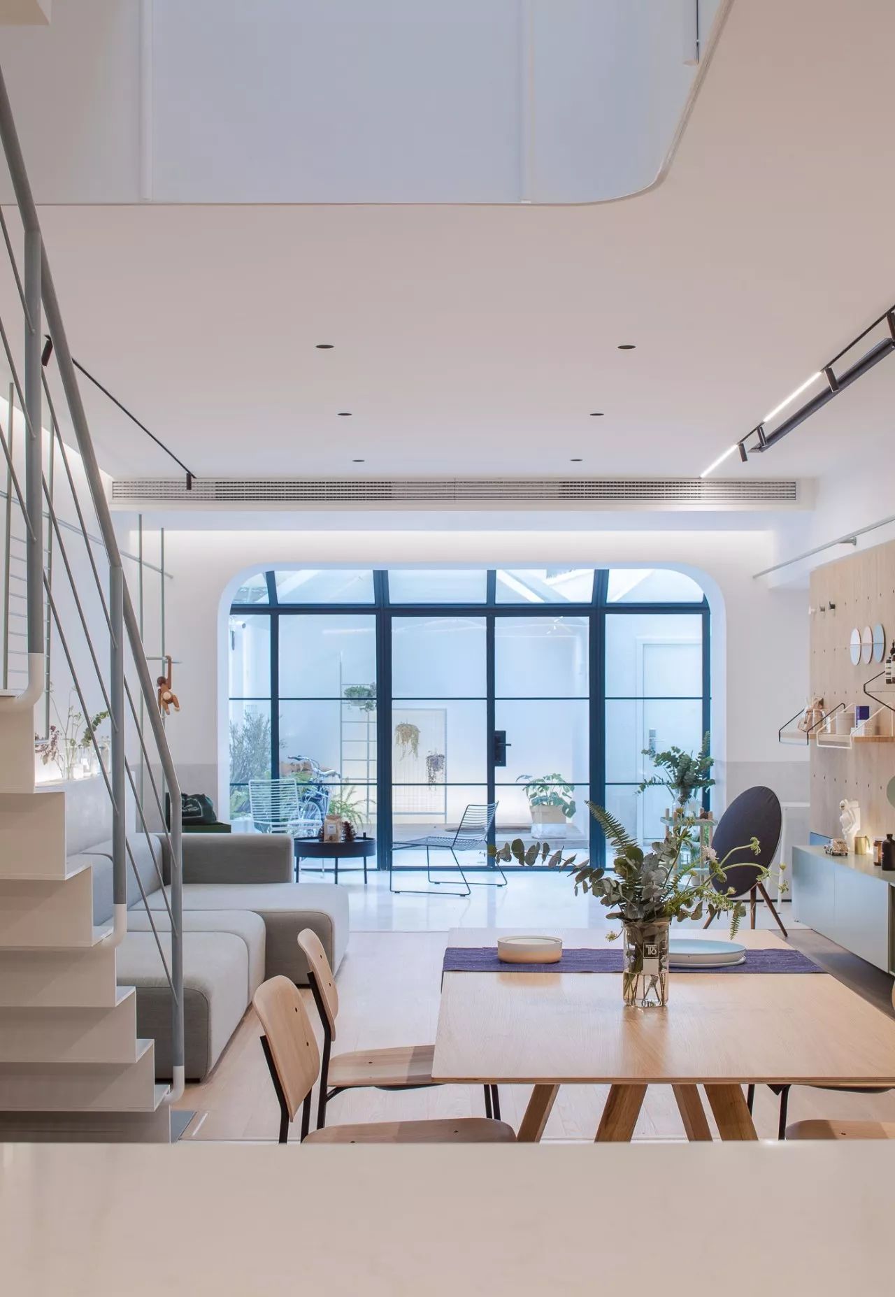 陽光,植物,室內(nèi),室外,模糊的場景界限讓空間和生活場景中隨意切換,我們在院子中預(yù)留了一個樹洞,春天的時候種上的樹木,隨著這個家,孩子一起成長,時間也是設(shè)計的一部分。