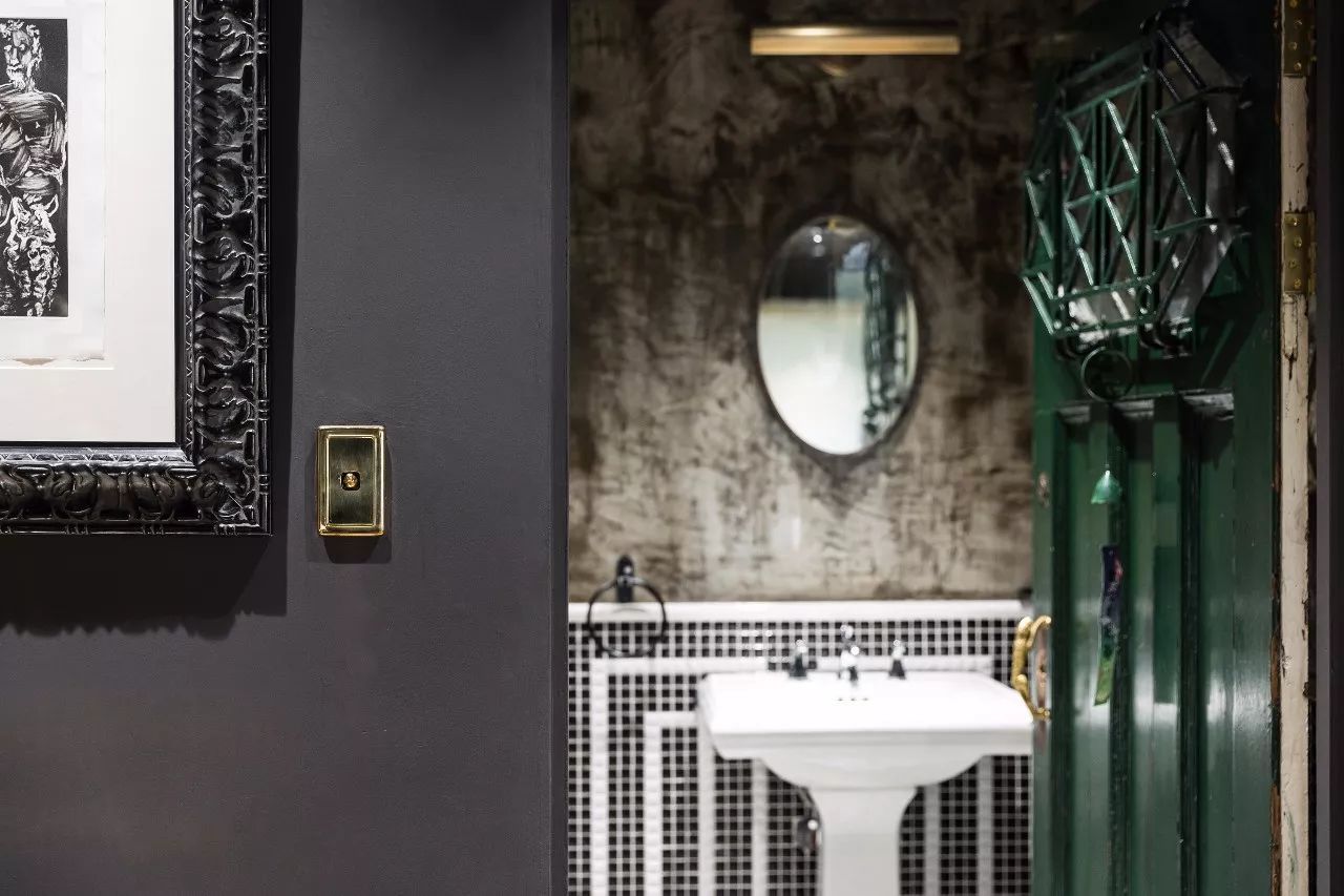 衛(wèi)生間的水泥墻面配上黑白馬賽克,沒那么清楚的古董鏡,斑駁的民國(guó)時(shí)期洋行的綠色木門,一切都這么穿越。