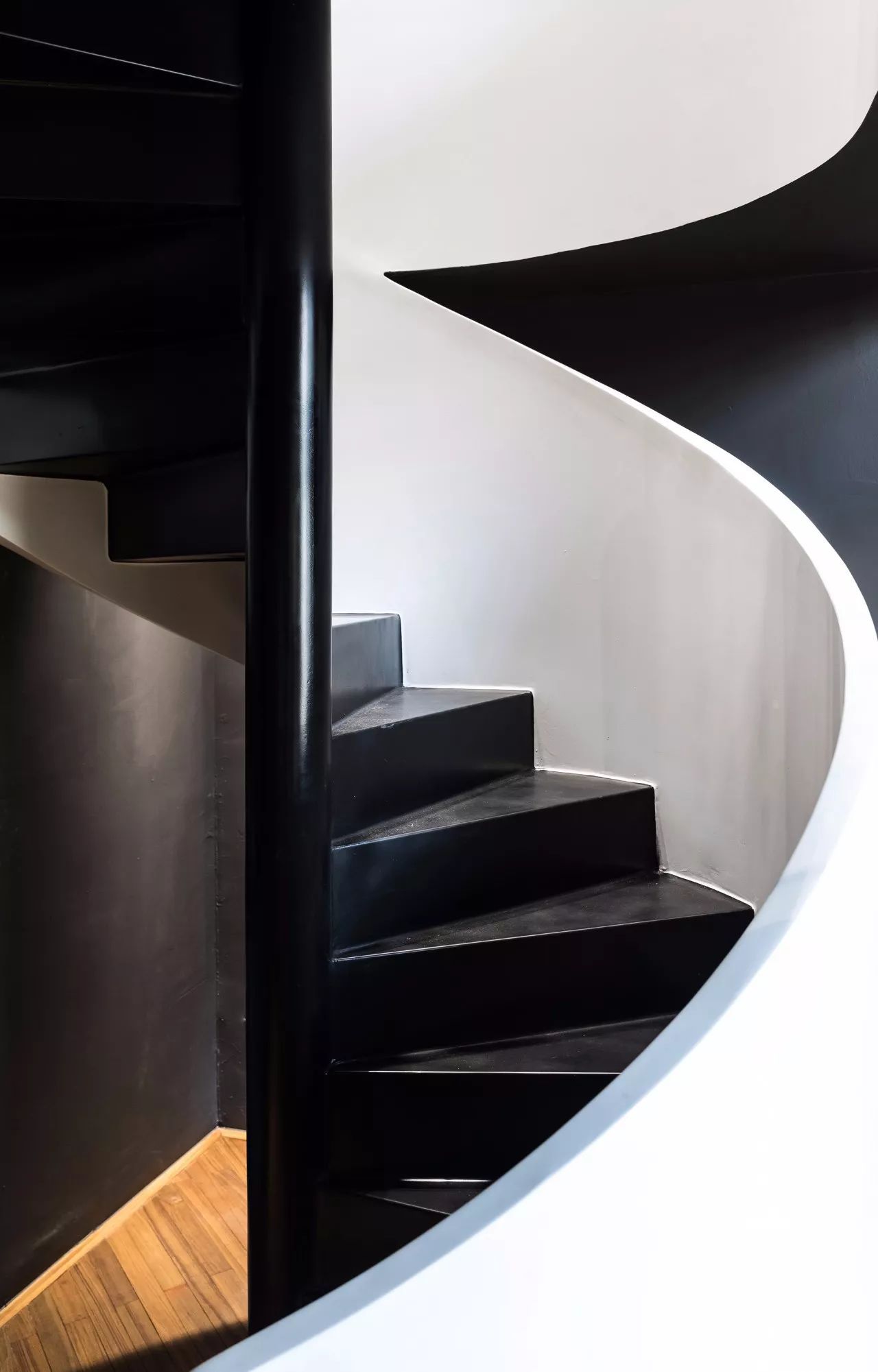 旋轉(zhuǎn)樓梯簡(jiǎn)潔有力,如雕塑一般。