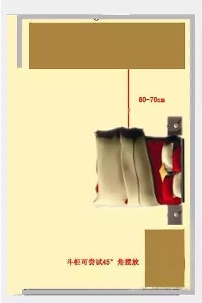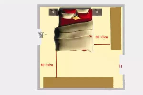 (3)床架、衣柜、斗柜建議分散擺放在三面墻,躺下床的時候看不到衣柜角這樣的距離和高度就差不多了,距離約在5750px以內。