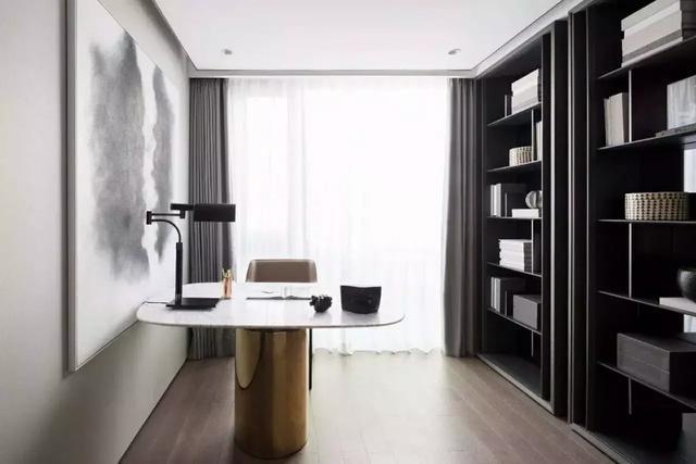 對于不規(guī)則的書房,建議書柜采用定制的方式,配合空間的形體規(guī)劃,可以獲得良好的空間配置效果的。