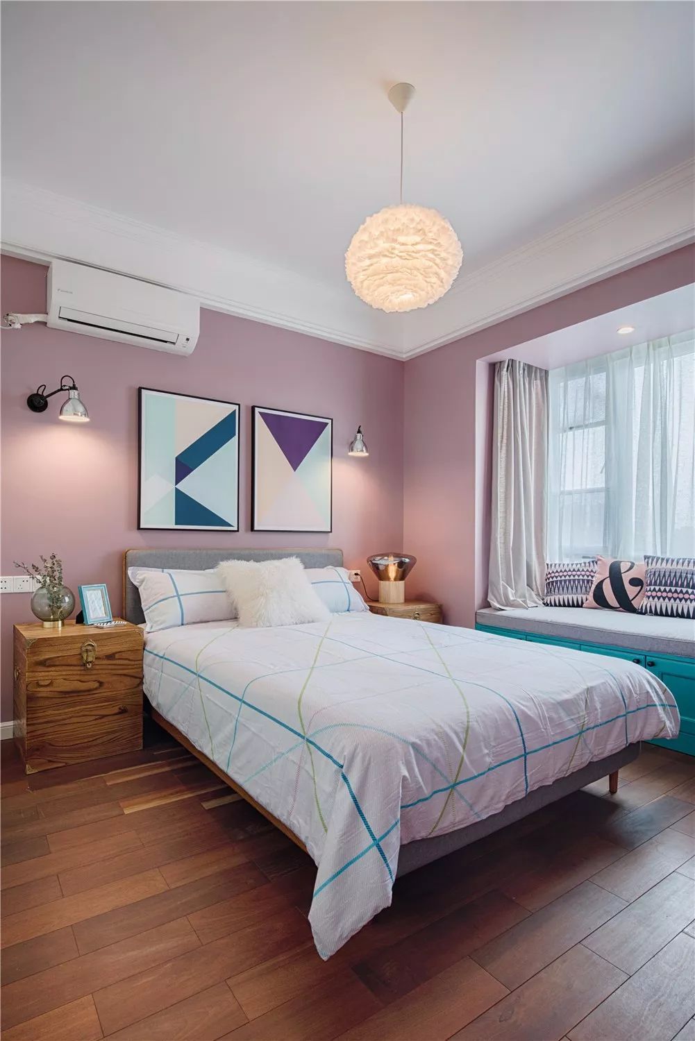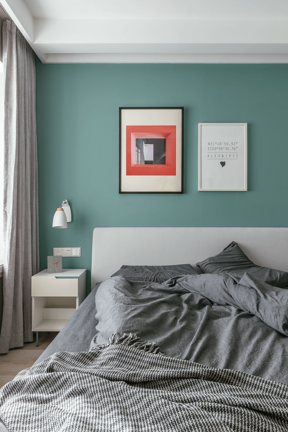 北歐風(fēng)格的臥室,床品與掛畫色系統(tǒng)一呼應(yīng),清爽之風(fēng)撲面而來。在這里,你可以給自己最愜意的慵懶和自由。