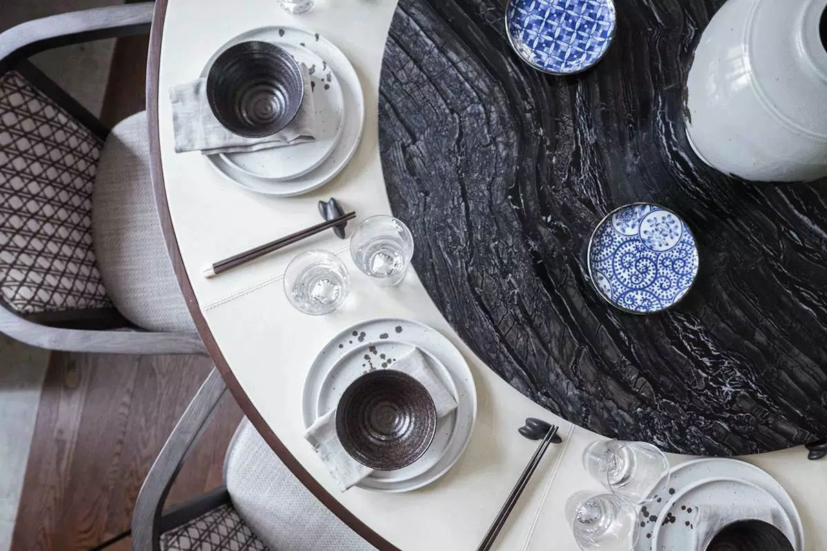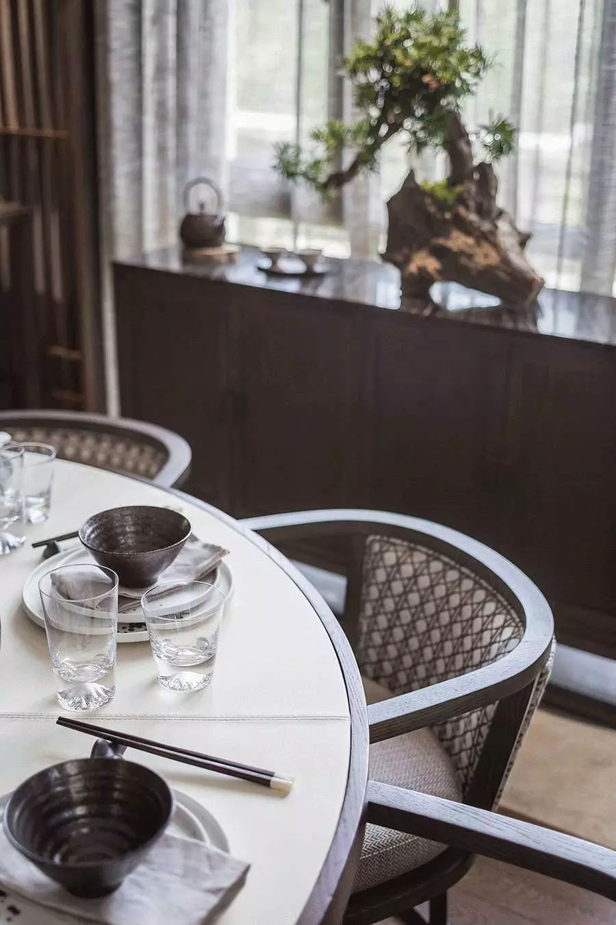 空間對稱的結(jié)構(gòu)、材質(zhì)的運用及軟裝陳列方式都體現(xiàn)出中式的韻味與儀式感,在東方美學(xué)被不斷提起的今天,呈現(xiàn)出一種開放的姿態(tài),并保持自我的風(fēng)格