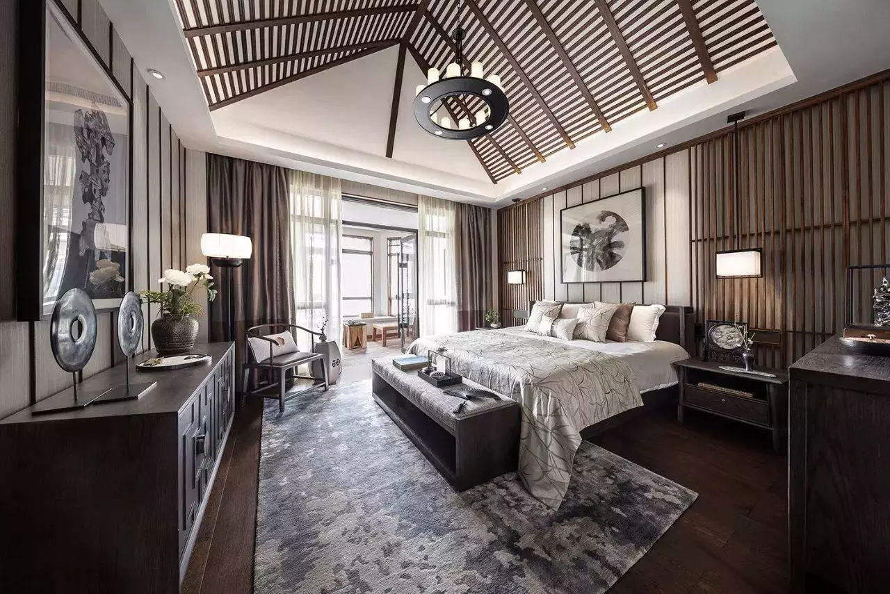 天花設(shè)計采用木架斜屋頂造型,大氣而穩(wěn)重;木質(zhì)溫潤的觸感、淡雅素凈的配色及藝術(shù)品的點綴為主臥進行了全新的定位。