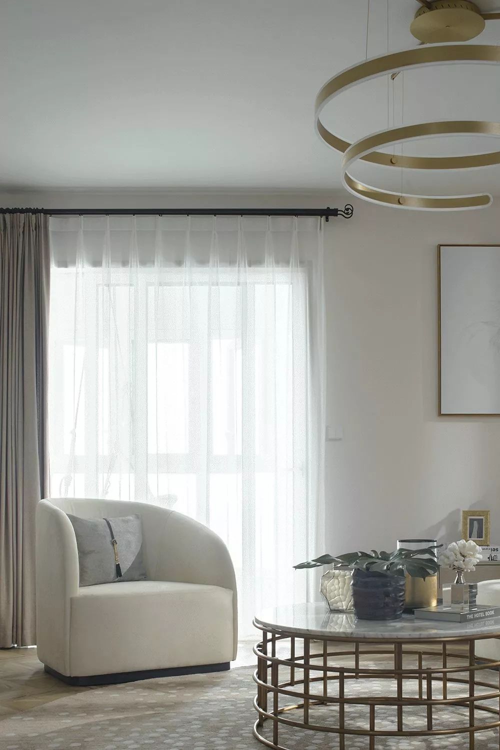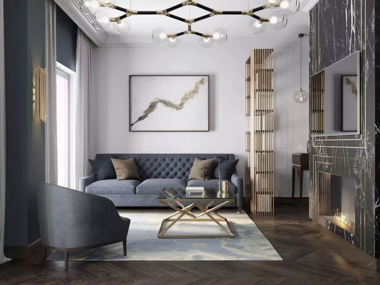 如果客廳沒有放置電視機(jī),沙發(fā)的擺放方式便是多種多樣。