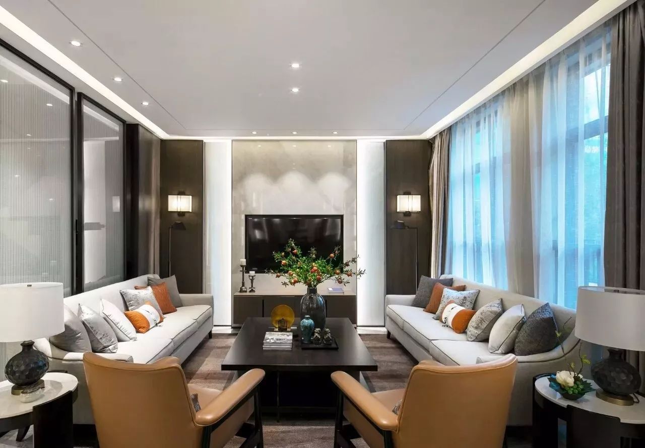 如果客廳有電視機(jī),一般沙發(fā)是正對著電視機(jī),這樣有利于保護(hù)眼睛和脖子。