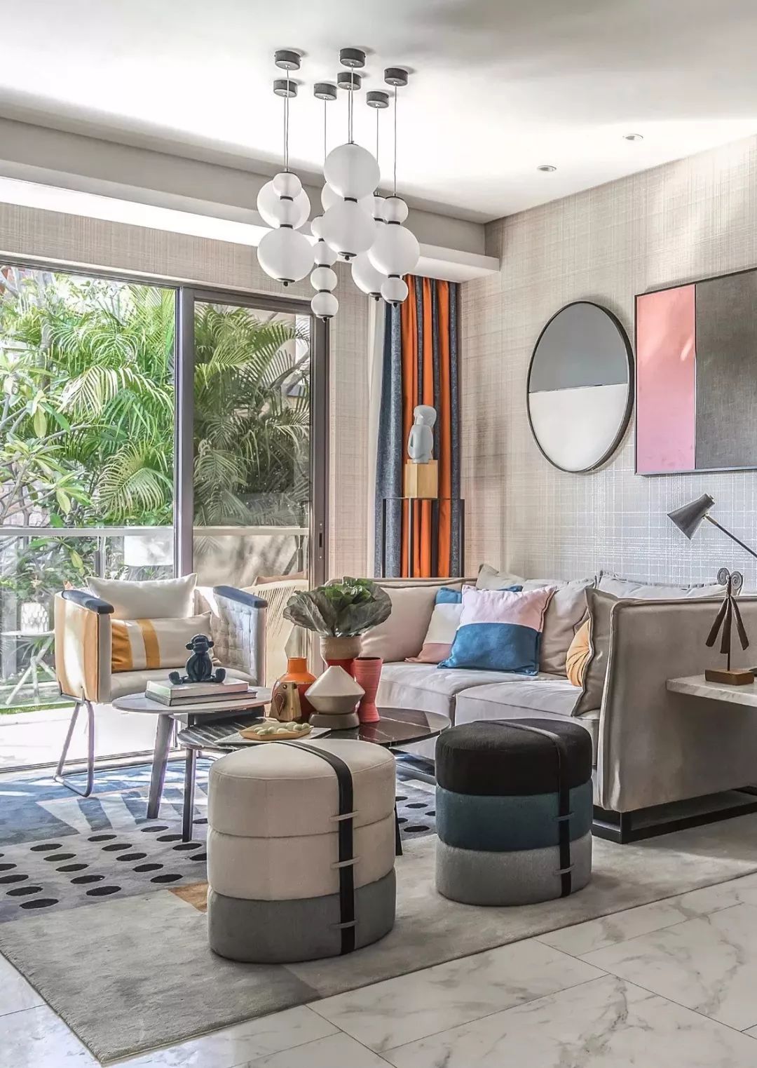幾何元素運(yùn)用得好,可以使室內(nèi)呈現(xiàn)出高逼格的視覺沖擊。因?yàn)樗请S性不規(guī)則的,給人一種不受束縛的自由感和動(dòng)感,增加空間亮點(diǎn)的同時(shí),還可以把其他家居元素襯托得更有活力。