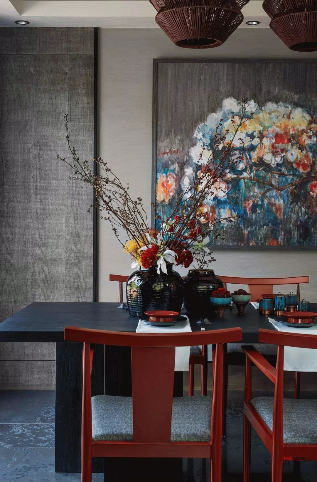 過多的純色應(yīng)用,難免讓人感到死板和乏味,通過明暗色彩的強(qiáng)烈對(duì)比與混搭,能夠碰撞出一種趣味的美感,給主人帶來無盡的視覺享受。