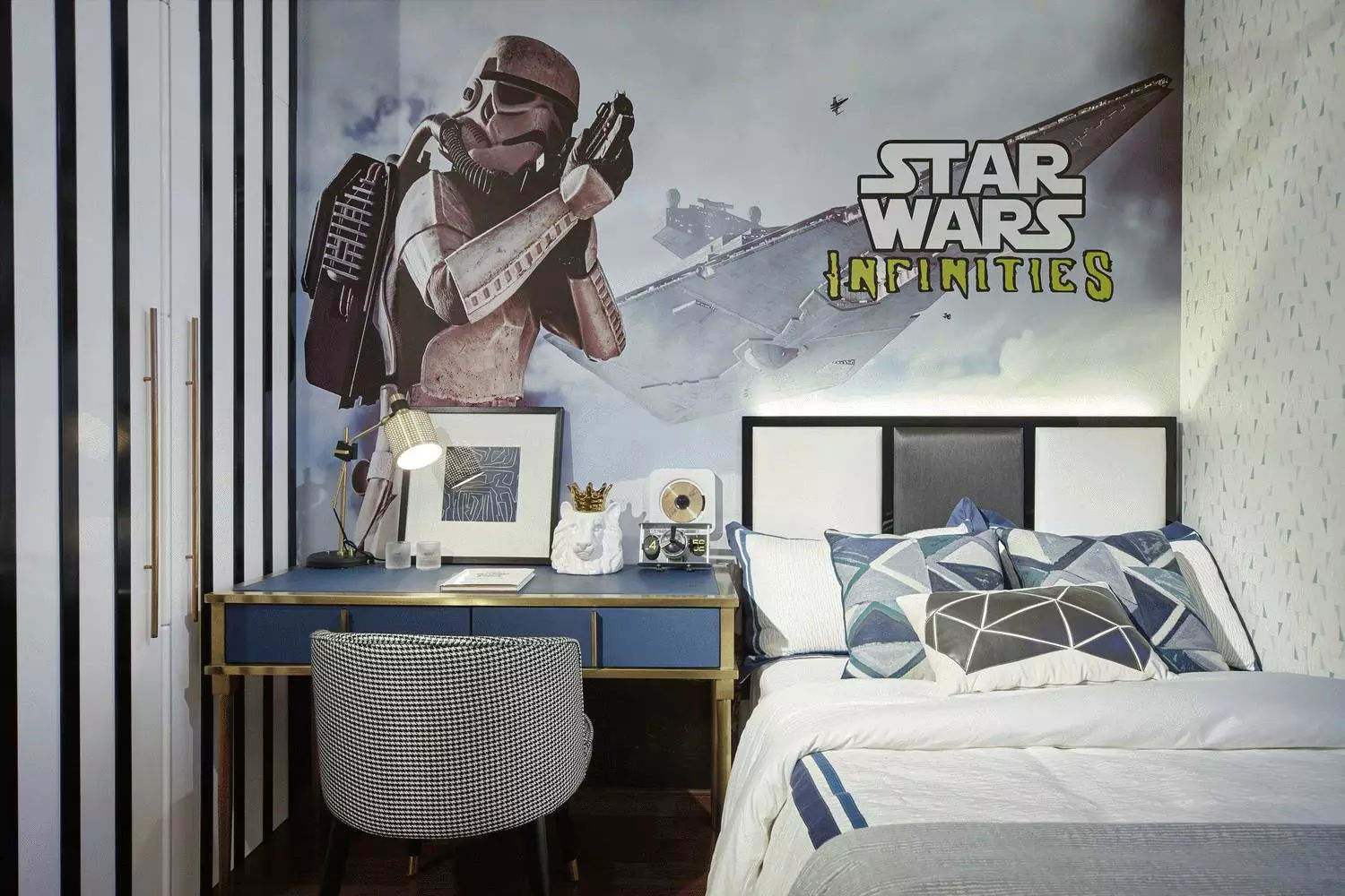 構(gòu)建了一代人夢的Star Wars,酷炫飛行、激光對射。成長的見證和印跡,美好記憶的象征,兒童房讓人感到充滿趣味的回味和娛樂。讓居住者遇見世界!