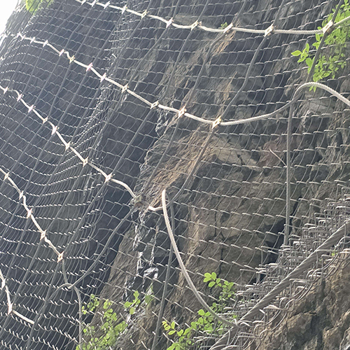 為了保護(hù)過往的車輛,在需要的部位安裝鋼絲繩網(wǎng)和菱形網(wǎng)為主要材料的防護(hù)系統(tǒng)。