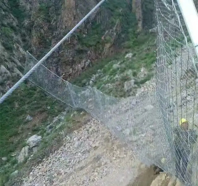 柔性防護(hù)網(wǎng)便利之處在于地下水可以自在排泄,避免了因?yàn)榈叵滤畨毫Φ纳叨鸬倪吰率Х€(wěn)問(wèn)題。該系統(tǒng)除對(duì)穩(wěn)定邊坡有一定奉獻(xiàn)外,同時(shí)還能按捺邊坡遭受進(jìn)一步的風(fēng)化剝蝕,且對(duì)坡面形狀特征無(wú)特殊要求,不損壞和改動(dòng)坡面原有地貌形狀和植被成長(zhǎng)條件,其敞開(kāi)特征給隨后或今后有條件并需求時(shí)施行人工坡面美化保留了重要的條件,綠色植物可以在其敞開(kāi)的空間上自在成長(zhǎng),植物根系的固土效果與坡面防護(hù)系統(tǒng)結(jié)為一體,從而按捺坡面損壞和水土流失,反過(guò)來(lái)又保護(hù)了地貌和坡面植被,完成很好的邊坡防護(hù)和環(huán)境保護(hù)意圖。