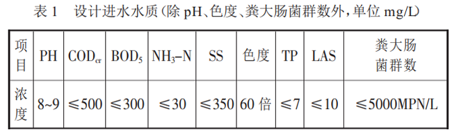 CODcr、TP、LAS、糞大腸菌群等污染物,其主要污染物濃度見(jiàn)表 1。