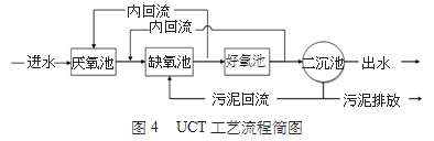 與 A2/O 相比,混合液和污泥均先回流到缺氧池,有效防止硝酸鹽氮和氧氣直接進(jìn)入?yún)捬醭兀偻ㄟ^內(nèi)回流從缺氧區(qū)回流至厭氧區(qū),為厭氧段提供了最優(yōu)的環(huán)境條件。其流程見圖 4。