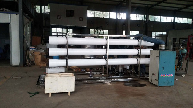 通常的預處理系統組成如下,粗濾(~80微米)以除去大顆粒,加入次氯酸鈉等氧化劑,然后經多介質過濾器或澄清池進行精密過濾,再加入亞硫酸氫鈉還原余氯等氧化劑,最后在高壓泵入口之前安裝保安濾器。保安濾器的作用顧名思義,它是作為最終的保險措施,以防止偶然大顆粒對高壓泵葉輪和膜元件的破壞作用。含顆粒懸浮物較多的水源,通常需要更高程度的預處理,才能達到規(guī)定的進水要求;硬度含量高的水源,建議采用軟化或加酸和加阻垢劑等,對于微生物及有機物含量高的水源,還需要使用活性炭或抗污染膜元件。
