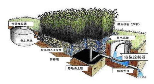 人工濕地是利用人工水生態(tài)系統(tǒng)內(nèi)多級(jí)生物的稀釋降 解作用來去除或削減水中污染物的方法。人工濕地作為一種新型生態(tài)污 水處理技術(shù)具有投資和運(yùn)行費(fèi)用低、抗沖擊負(fù)荷能力強(qiáng)、處理效果穩(wěn)定、 出水水質(zhì)好、水生植物有一定經(jīng)濟(jì)價(jià)值等諸多優(yōu)點(diǎn)。