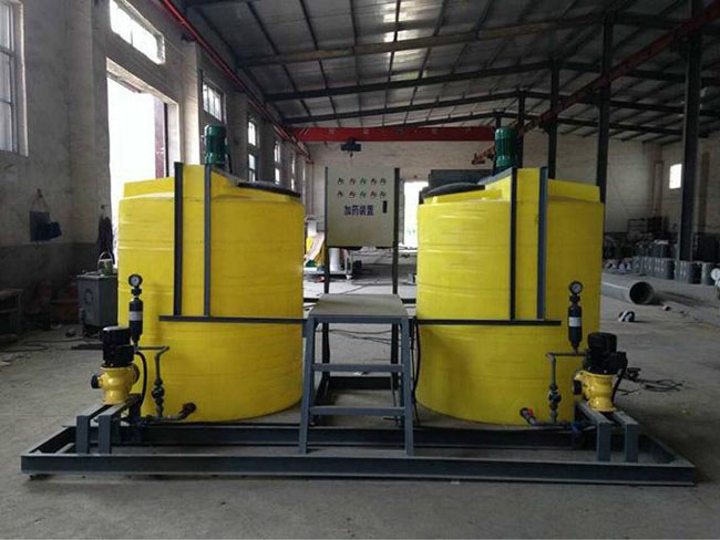 藥劑儲(chǔ)存罐、溶解箱、攪拌機(jī)、計(jì)量泵、管道過濾器、回流管道及吸藥管道及吸藥管道,出藥管道、溶解箱溢流管、放空管及必要的管道閥門和配件、安全所需的管件及閥門。