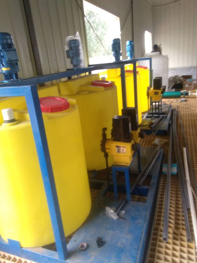 助凝劑加藥裝置與助凝劑配置、溶解攪拌裝置設(shè)置在一起。