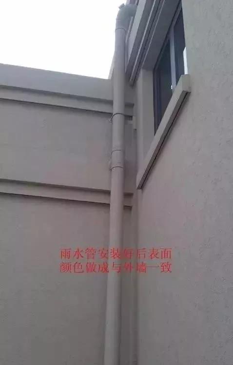 排水出墻外側(cè)設(shè)不銹鋼防水置,確保墻面不出面滲水
