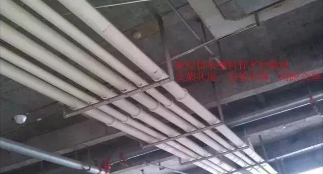 底層排水塑料管平行敷設(shè),支架共用,間距合理