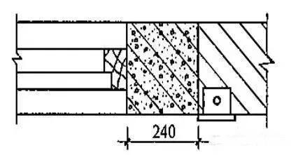 1)混凝土柱緊靠門框,柱寬為 240mm 且柱與柱旁墻體為同一平面時(shí)。應(yīng)將盒體埋設(shè)在柱旁 的砌體墻上,盒邊緊貼柱邊。