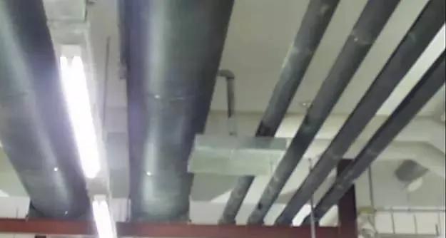 3)風(fēng)管外觀平整無(wú)變形,并排風(fēng)管吊架在同一直線上、法蘭完整,整體觀感良好。