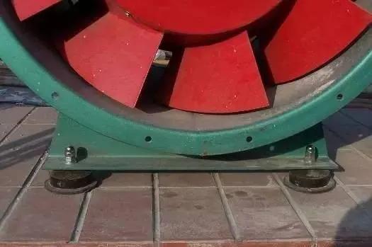 1)風(fēng)機(jī)減振采用橡膠墊減振,橡膠墊全部露在瓷磚面上,符合要求。