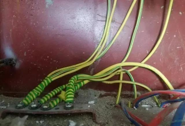 將所有雙色接地線,用60A的開口銅線鼻子可靠的壓在一起,兩三條線一個(gè)線鼻子!壓好包好雙色膠布!可靠壓在接地排上面!如圖: