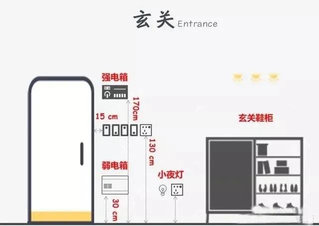 玄關(guān)1、全屋的開(kāi)關(guān)應(yīng)基本處于同一水平位置。2、玄關(guān)處可以設(shè)置一個(gè)插座用來(lái)裝烘腳器,下雨天或者冬天可以暖鞋,或者還能裝一個(gè)小夜燈,小孩,老人進(jìn)出都會(huì)很方便。